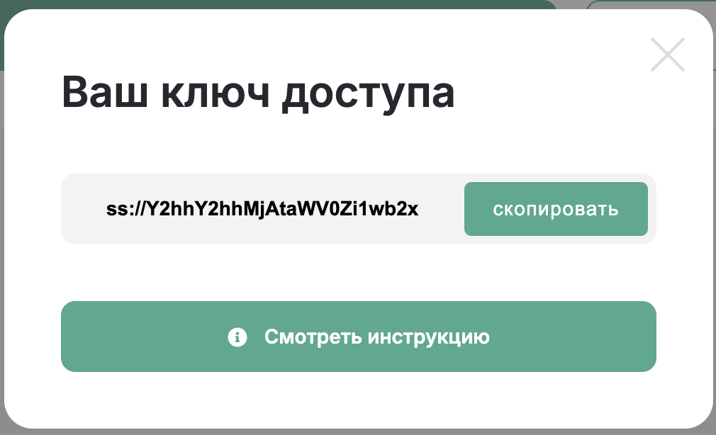 Вам нужен ключ, который выглядит как большая строка со случайными символами и начинается с ss://. Ключ приходит после оплаты, но его всегда можно заново получить, если есть активная подписка на OKVpn